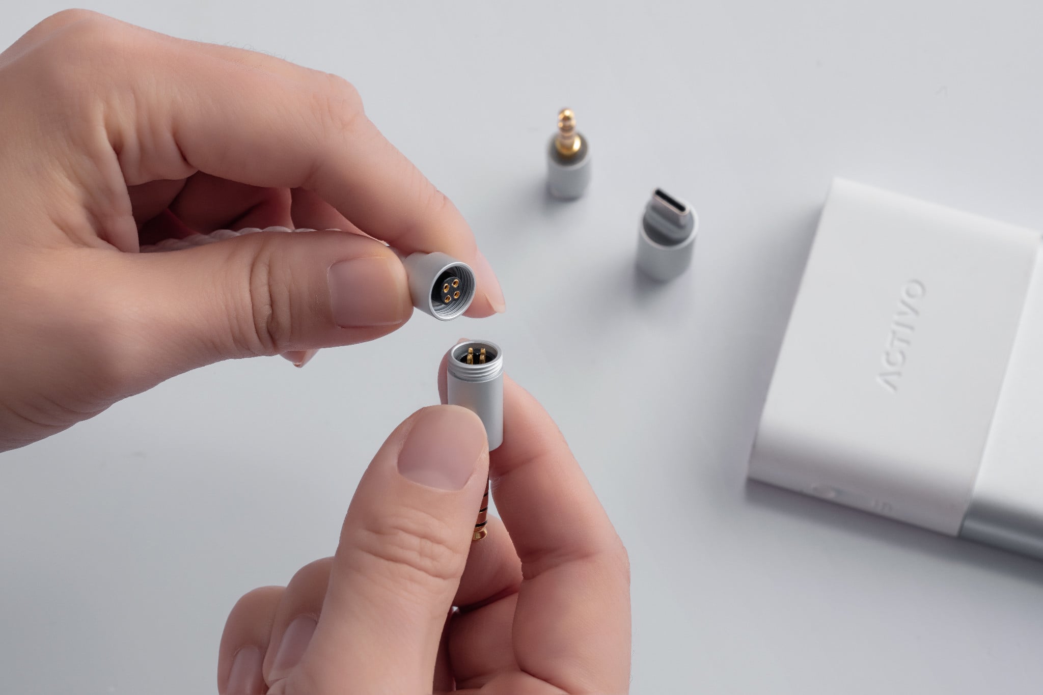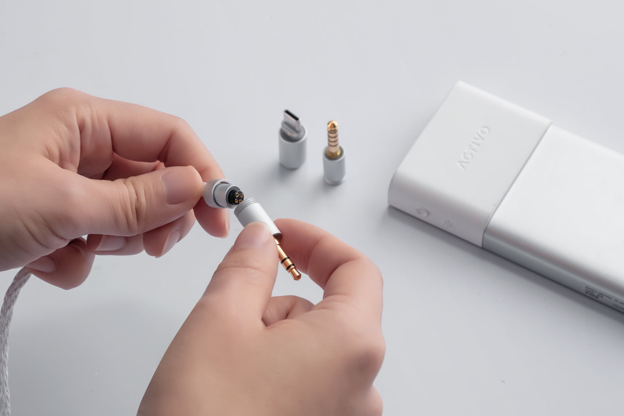 ACTIVO Scoop trang bị đầu nối 3.5mm, 4.4mm và USB-C, mang đến khả năng tương thích liền mạch với mọi thiết bị, từ máy nghe nhạc, smartphone, laptop đến nhiều nguồn phát khác.
