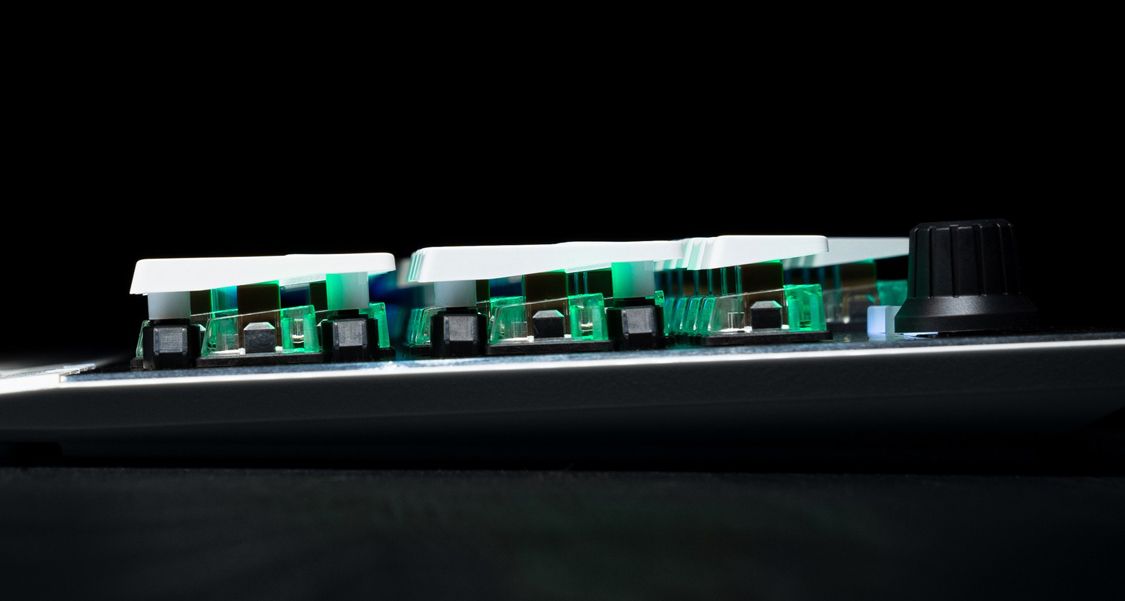 Bàn phím cơ Roccat Vulcan cung cấp nền tảng tốt nhất cho cơ chế đèn nền AIMO. Mỗi switch tích hợp 1 đèn LED độ bền cao với 16 triệu màu với hàng loạt hiệu ứng ánh sáng khác nhau. Switch làm bằng vật liệu trong suốt đồng nghĩa với việc ánh sáng đa màu sắc dễ dàng xuyên qua và trải đều trên mỗi phím bấm.