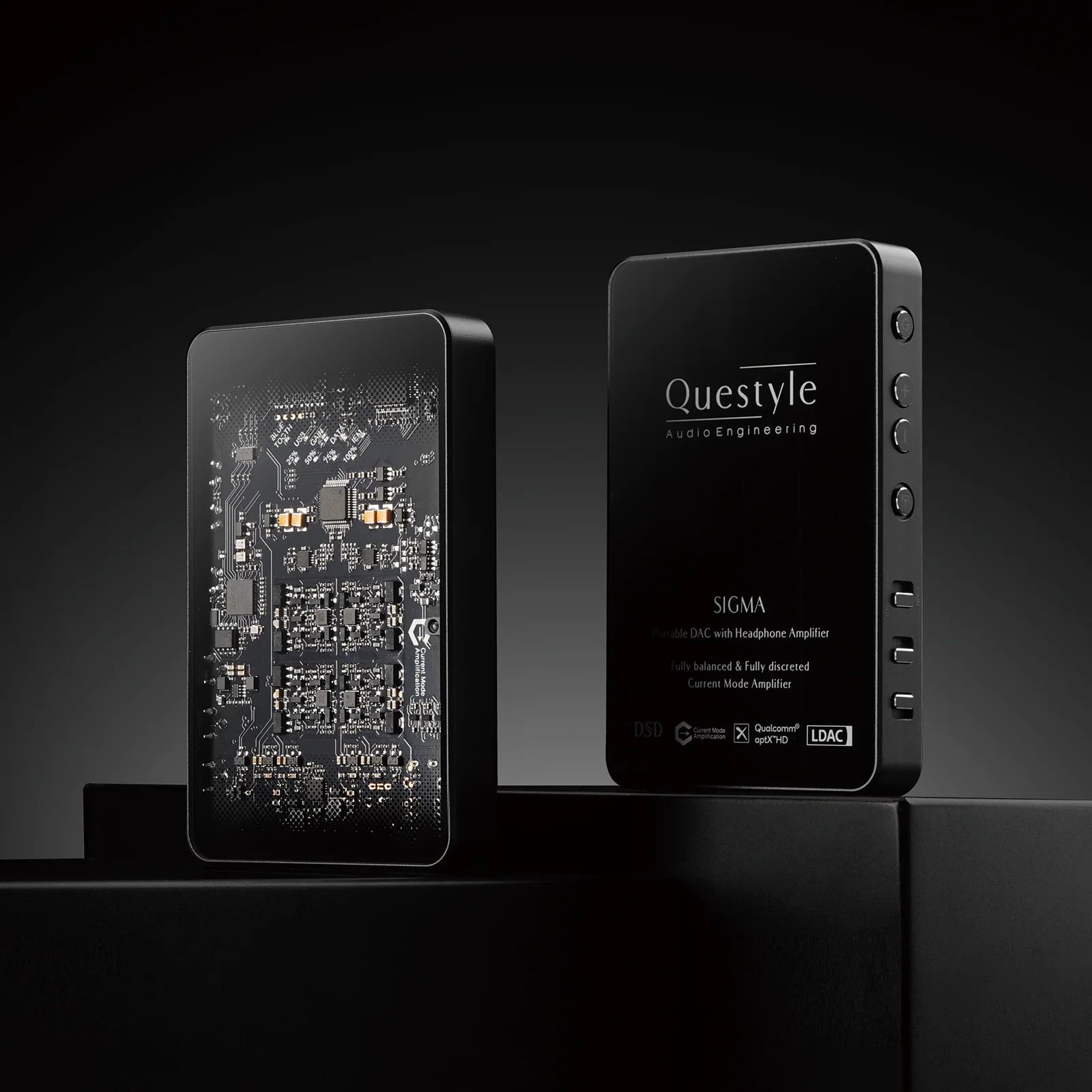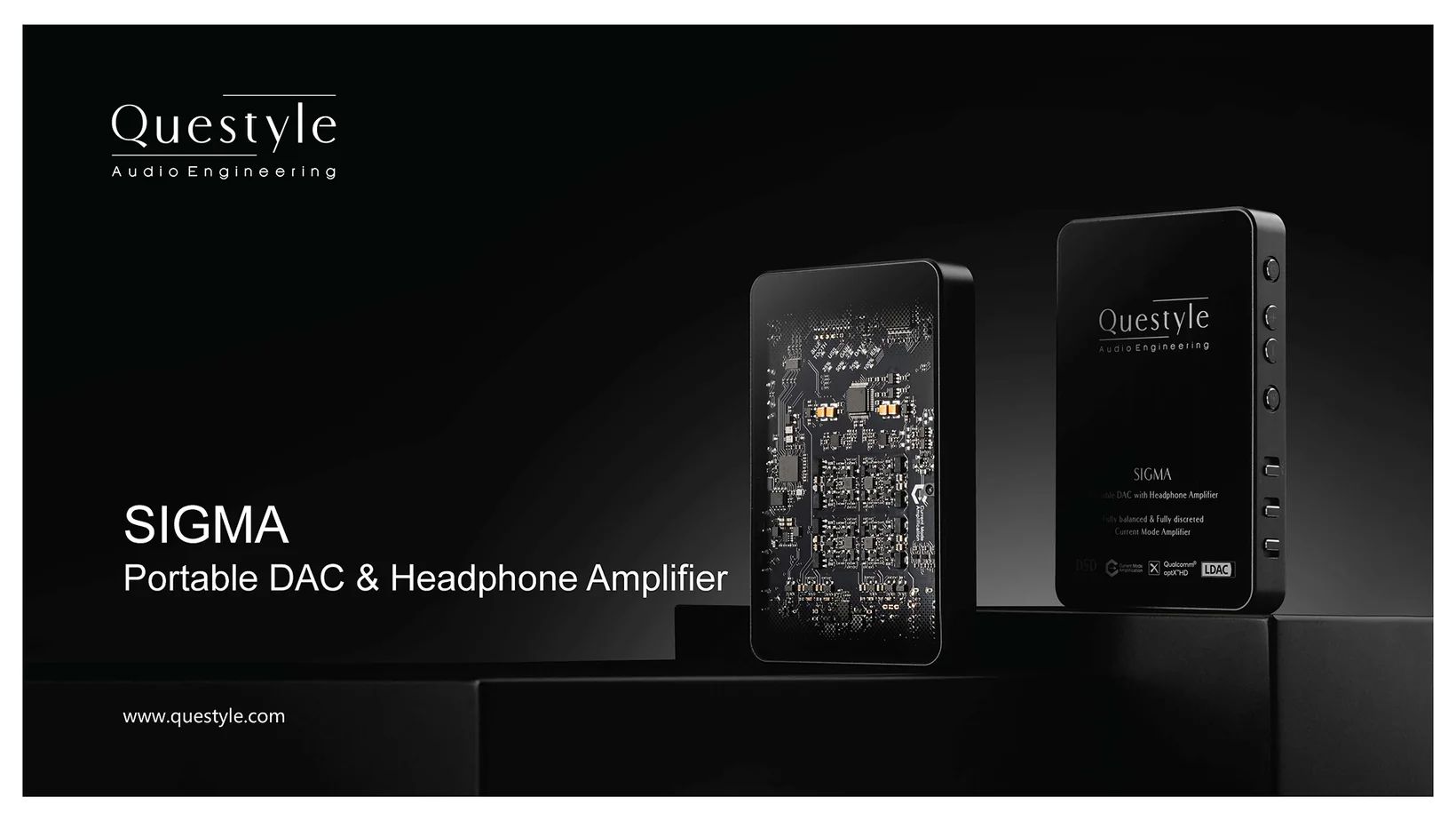 Thiết kế phong cách Bauhaus kết hợp với yếu tố LED cổ điển thể hiện đặc tính chuyên nghiệp của sản phẩm. Thân máy nhôm hàng không được phun cát siêu mịn, kính trong suốt cấp quang học tùy chỉnh, trang trí chấm chuyển màu, và lớp phủ chống nhiễu RF mang đến cho SIGMA vẻ ngoài độc đáo của gia đình Questyle, đồng thời thể hiện hiệu suất nội tại mạnh mẽ.